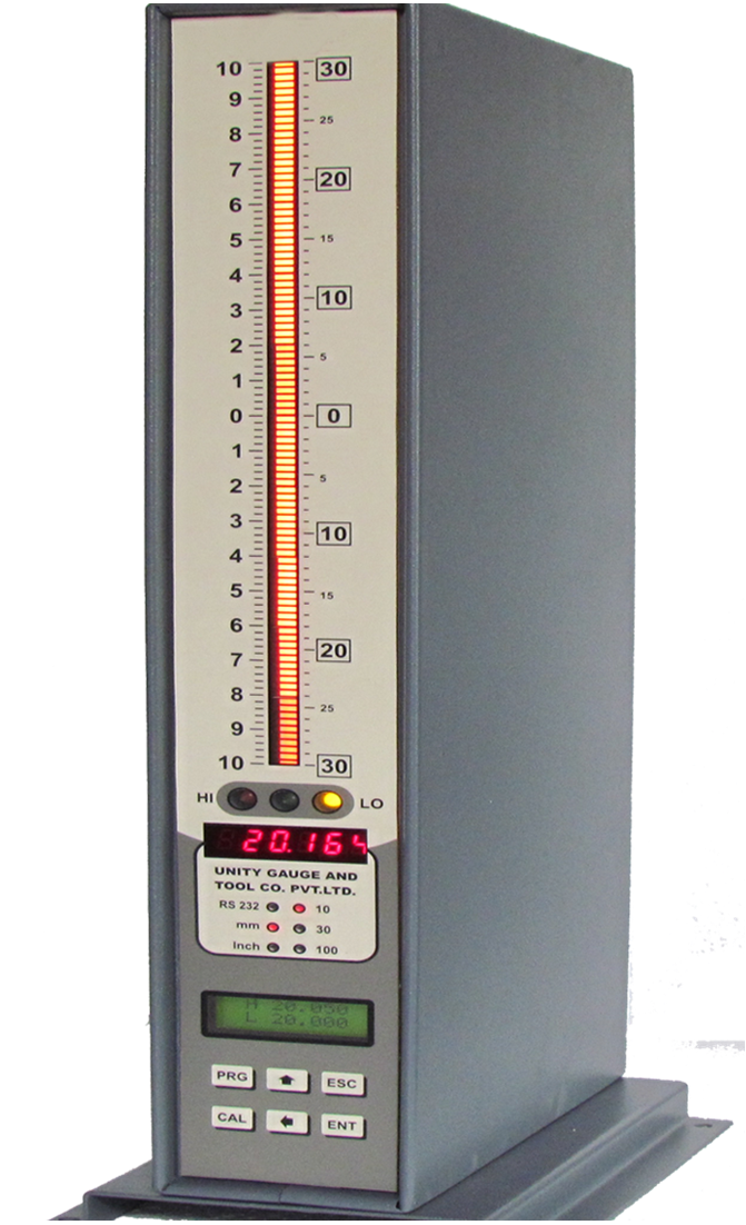 vTRI COLOUR SIX DIGI DISPLAY (OK/ NOT OK / REWORK) ABSOLUTE / COMPARATIVE MEASUREMENT AUTO CALIBRATION FACILITY METRIC / INTCH MEASREMENT STATIC / DYNAMIC MEASUREMENT RS 232 OUTPUT RELAY OUTPUT 24V